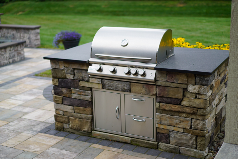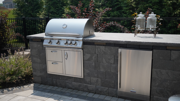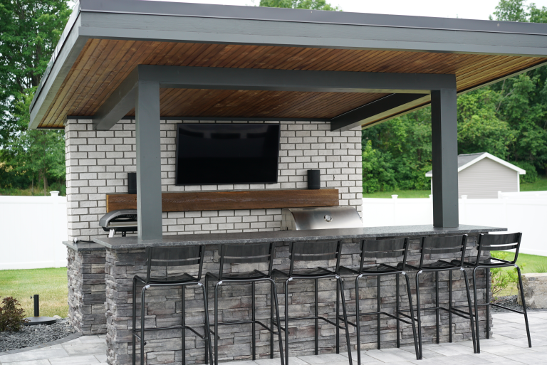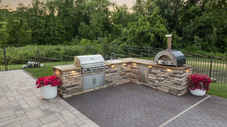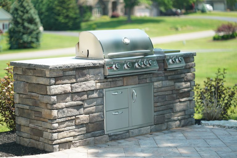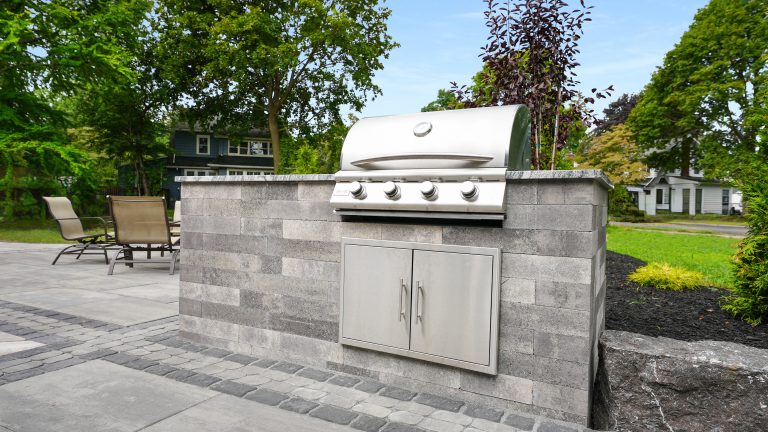 This page is a collection of outdoor kitchen projects to help you get ideas for your own backyard. You’ll see everything from simple grill setups to full outdoor cooking and entertaining spaces. Every outdoor kitchen featured here was built using Sensenig’s Landscape Supply materials and installed by talented contractors from Rochester, Buffalo, and across New York State.