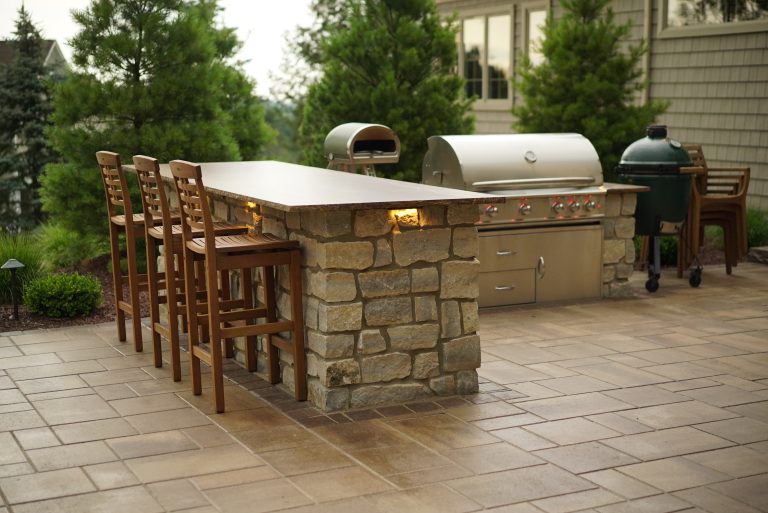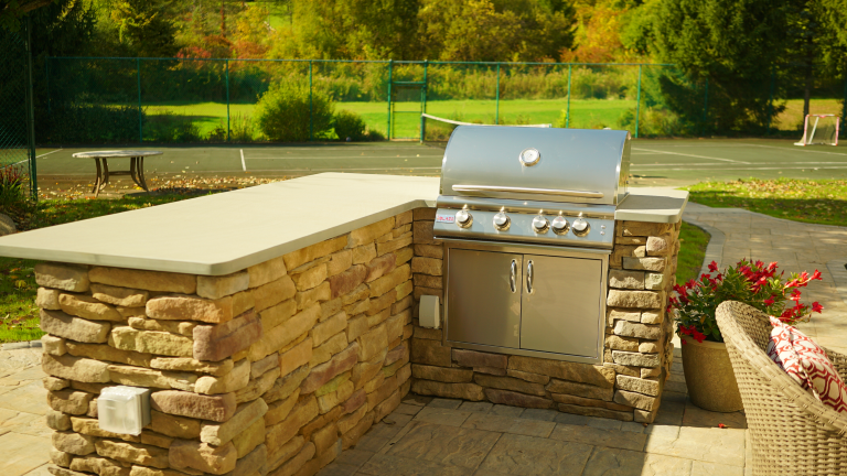 A great outdoor kitchen starts with the right layout and finishes. It should feel easy to use, have enough counter space for prep and serving, and include room for people to gather. The best designs also match the patio and outdoor space around it, so everything feels seamless. All of these projects use Sensenig’s products, including stone, veneer, and outdoor living materials.